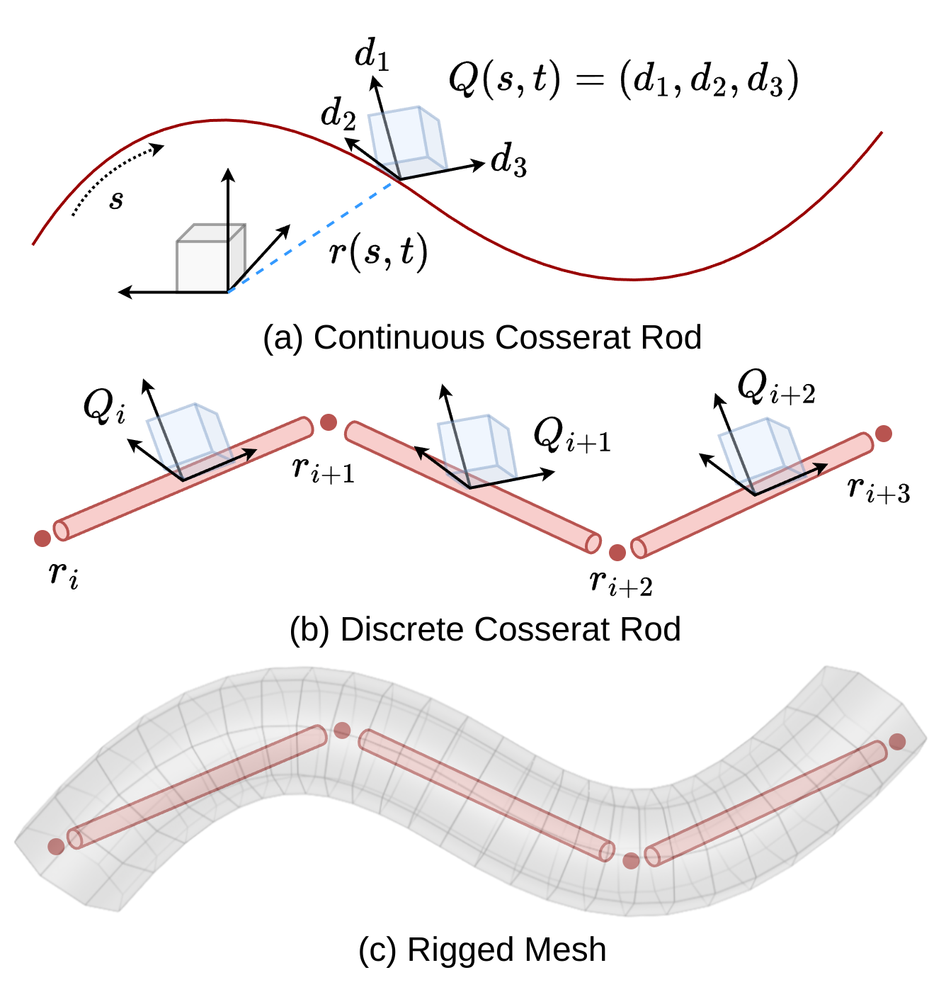 Mesh SkinningMaps discrete Cosserat rod deformations onto CAD models for high-fidelity visualization.